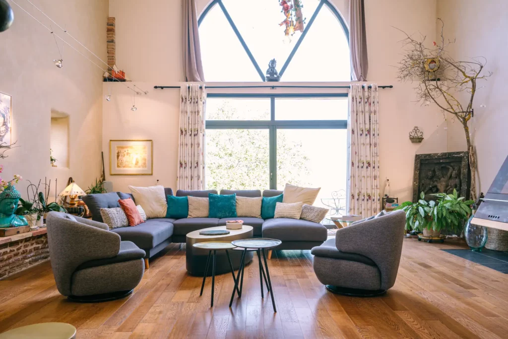 – un salon aux grands volumes dans la maison principale,
